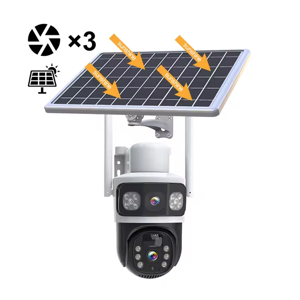 Оснащен солнечными панелями 7,5 Вт, зарядкой через интерфейс 5 В Type-C, аккумулятором емкостью 8000 мАч (4 секции) обеспечивается высокая выносливость. В комплект входит камера, солнечная панель 7,5 Вт, кронштейн, руководство, сумка для винтов, размер 252 × 202 × 164 мм, вес 1,58 кг, размер коробки: 522 * 415 * 275, Вес: 22,5 кг/12 шт. Простота установки.