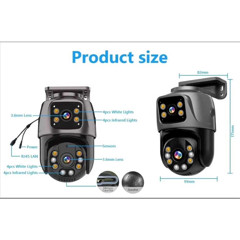 ICSee 6-мегапиксельная наружная POE-камера, водонепроницаемая XMeye с двусторонней аудиосвязью, POE, двумя объективами и PTZ-функцией